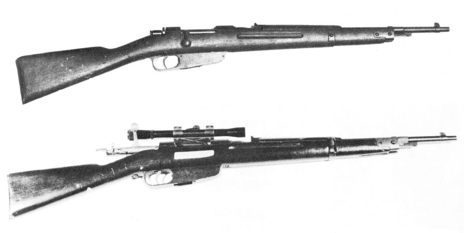 Both photos that you originally posted are Mannlicher Carcanos ..... However On closer inspection I believe that the scope being mounted on the righ hand side is an optical illusion which creates an optical confusion. ....