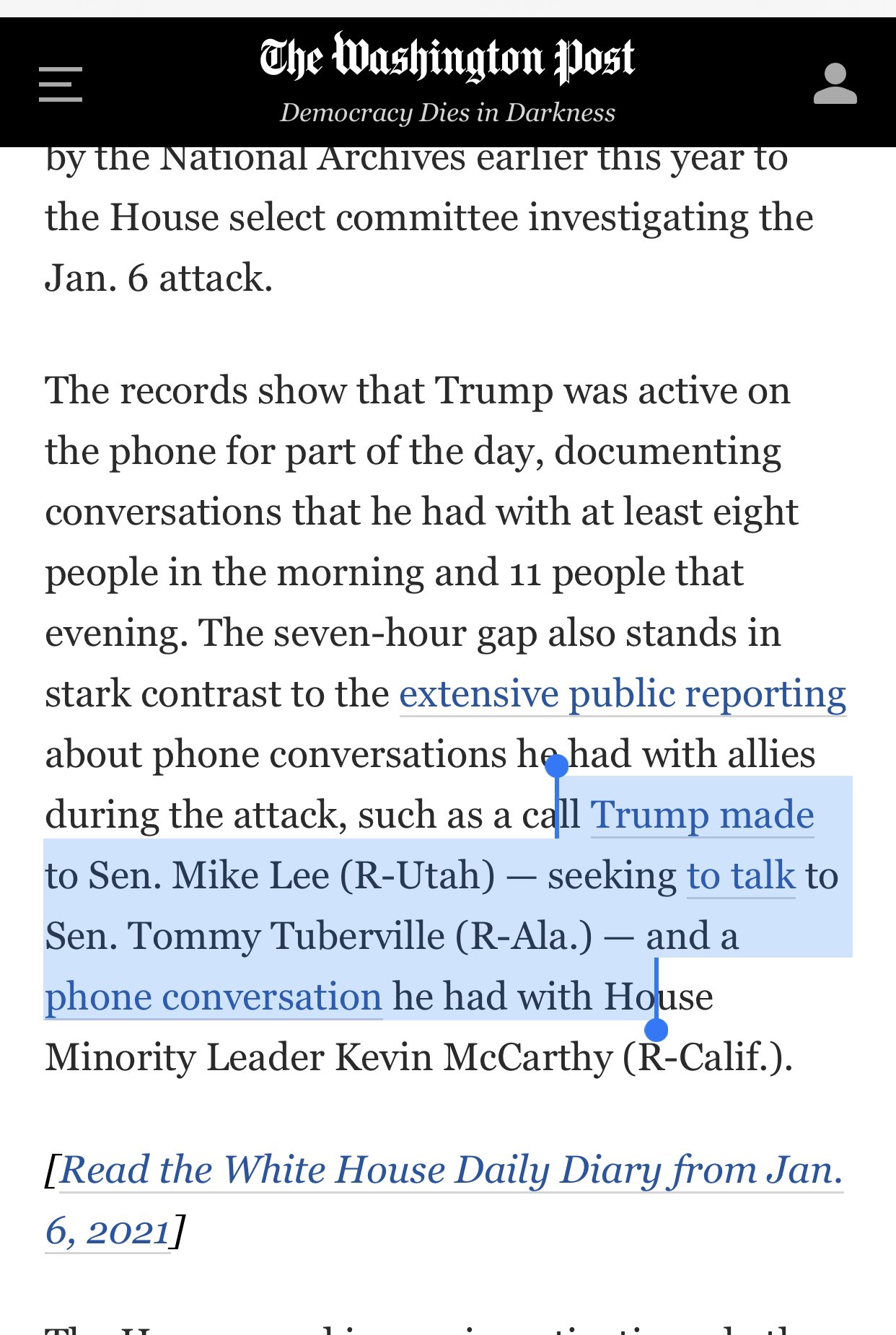 You can read more here: https://www.nytimes.com/2022/03/29/us/politics/trump-tweet-jan-6.html