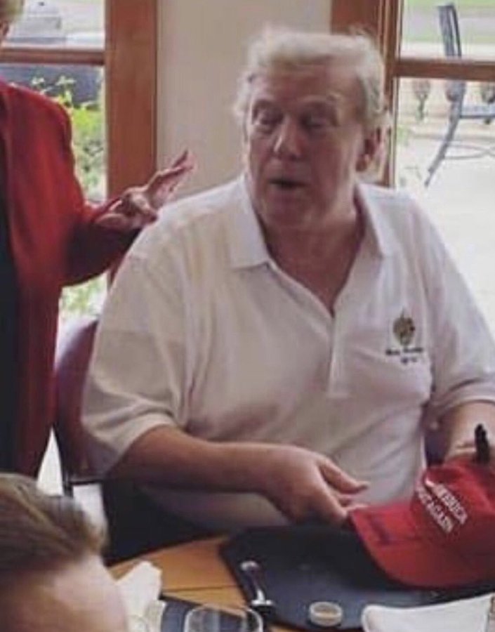 Donnie without his orange makeup looking senile in this photo. No wonder he's now talking about his poor health.