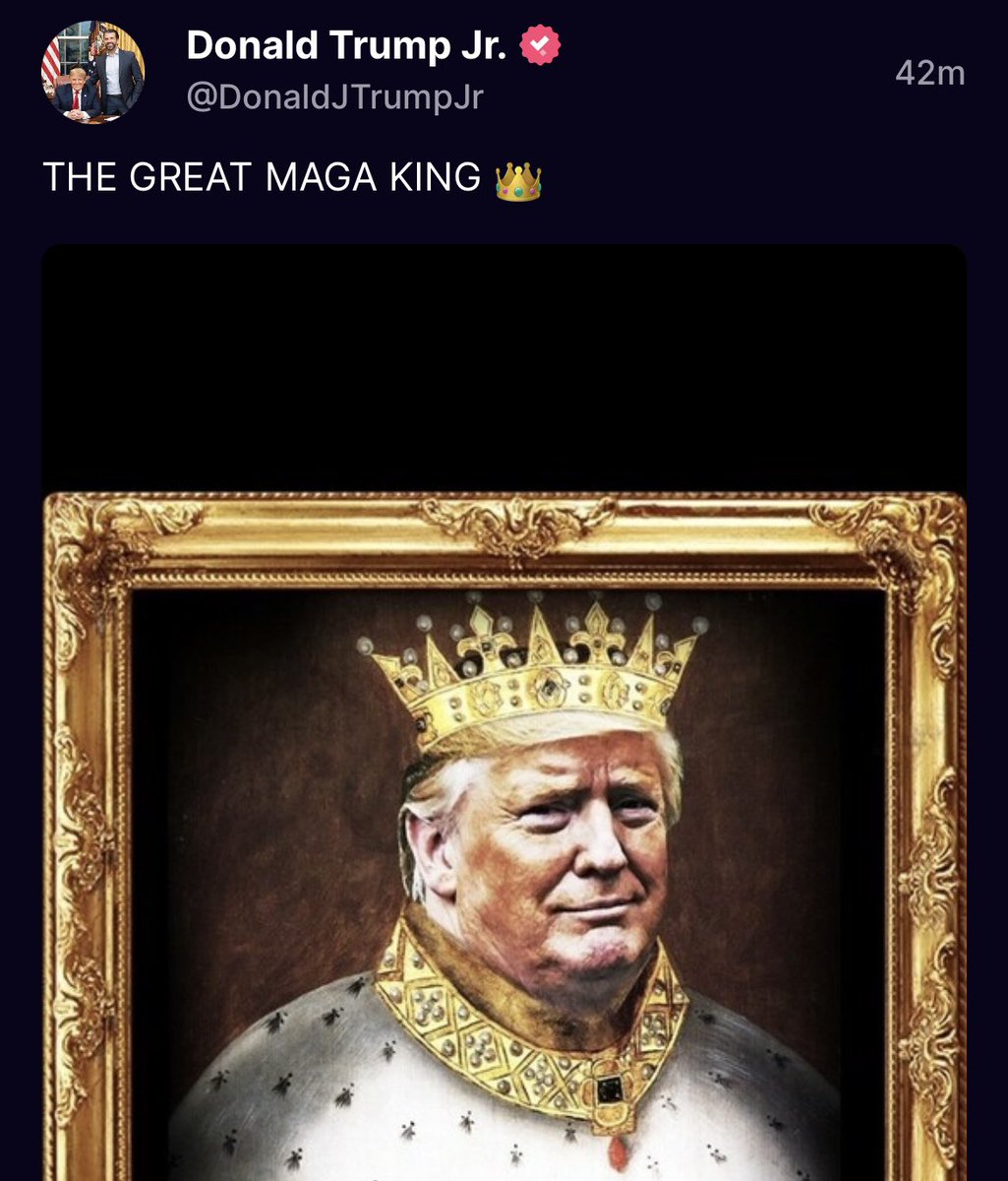 Donald Trump Jr. posted this on his social media. He thinks his father is a "king" and thinks of himself as "Prince".