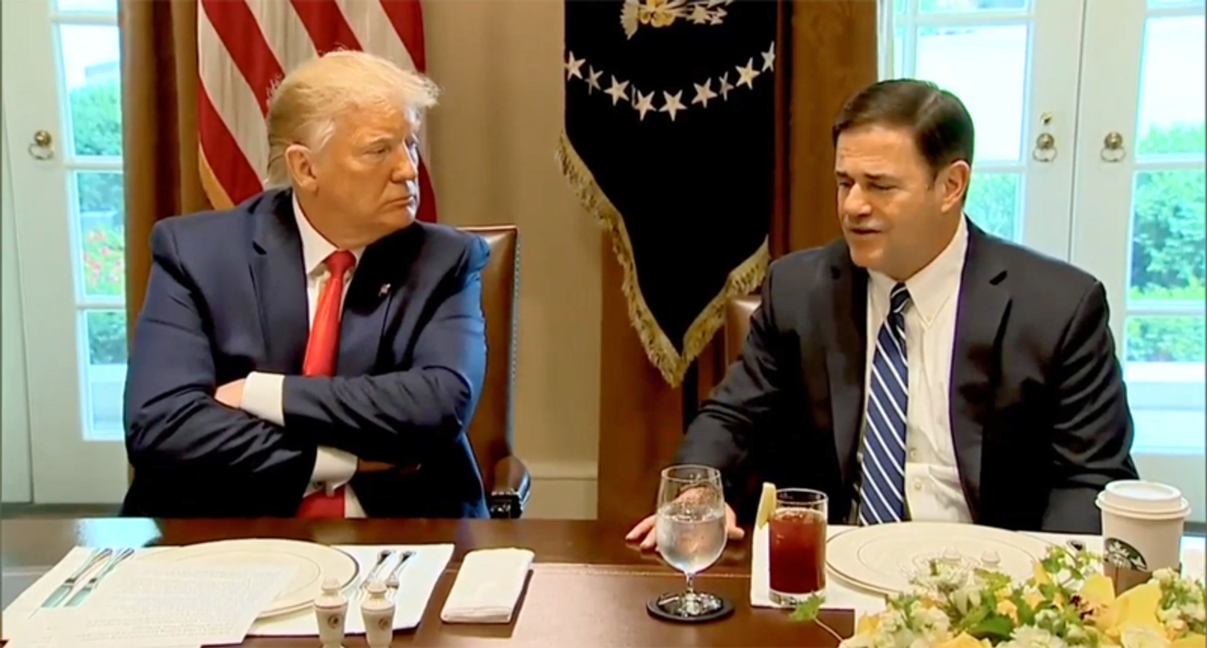 New reporting shows Trump pressured Ducey to deny Joe Biden's election win in Arizona, and video shows the former governor was signing the certification for the new president as the ousted president apparently made one last-ditch attempt to change his mind via a phone call. He never revealed details of those Trump's desperate efforts to the public, wrote MSNBC columnist Hayes Brown.