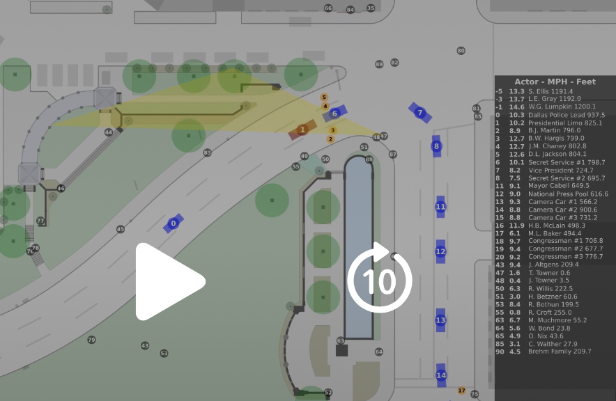 I am not seeing that at all in Mark Tyler’s animation. Here is the frame showing Rosemary Willis (circle no. 50) in the position seen in Z145.  The President’s car is right along side where she is standing.
