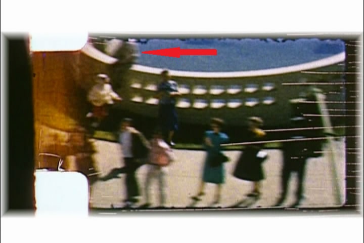 Here’s an image from Elsie Dorman’s film of what I believe is Howard Brennan’s squatting in the shadows of the wall he had been sitting on