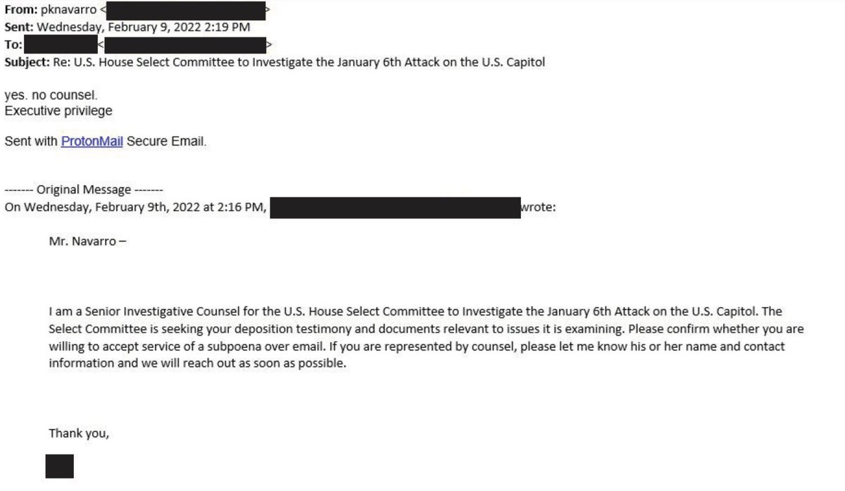 Here's how Peter NAVARRO responded when first contacted by the select committee.