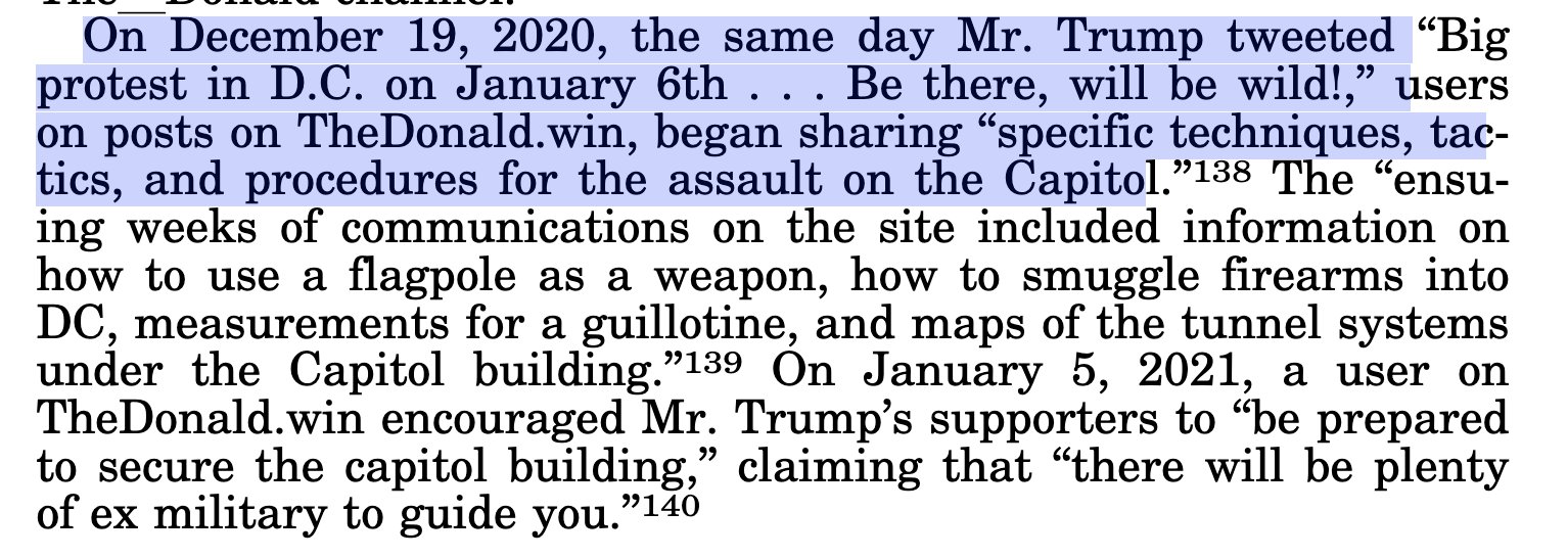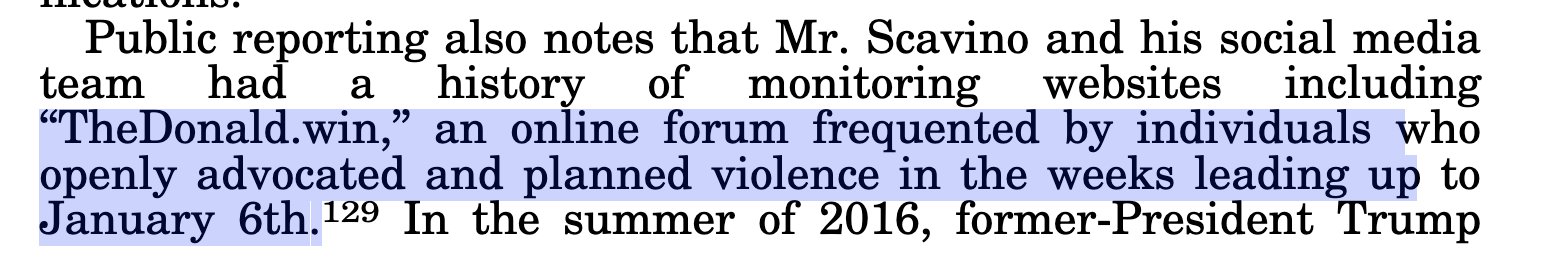 Scavino also monitored TheDonald [dot] win, an online forum visited by folks who "openly advocated and planned violence" leading up to Jan. 6.