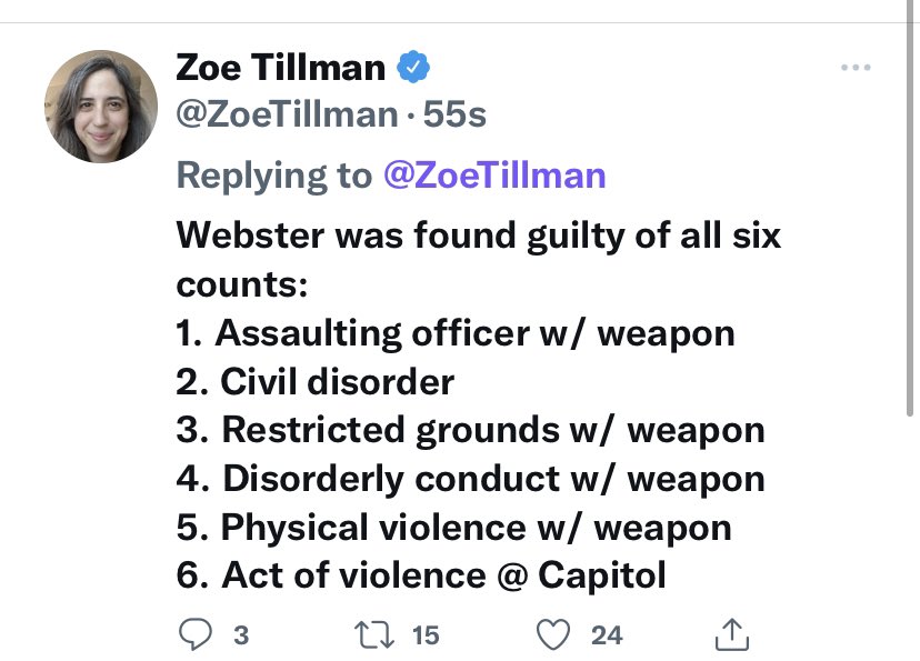 BREAKING: An NYPD veteran has become the first person convicted of assaulting a police officer during the U.S. Capitol riot. A federal jury rejected Thomas Webster's claim that he acted in self defense when he tackled the officer and grabbed his gas mask.