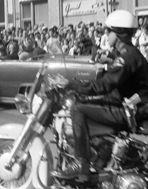 This motorcycle cop next to the Kennedy Limo appears to be gloveless.