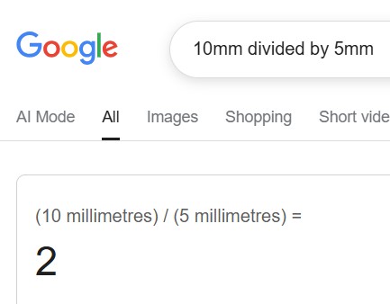 5mm goes into 10mm twice.