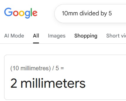 And 10mm divided into 5 parts means each part equals 2mm.