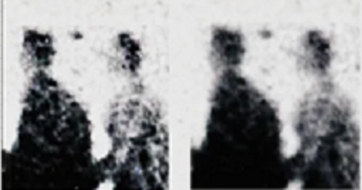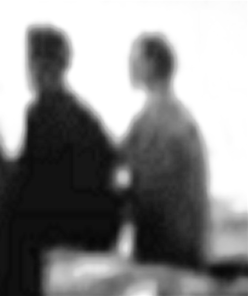 There is a square of a lighter shade around the two men. I don't know if it was like that when Kemp originally got the image or if this is a result of his work on the image. If it is I would really like to see the original image