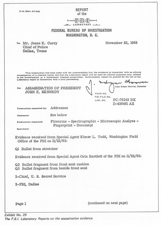 Instead, Dallas FBI agent-in-charge J. Gordon Shanklin mentioned the blanket, which he suggested was used to carry the