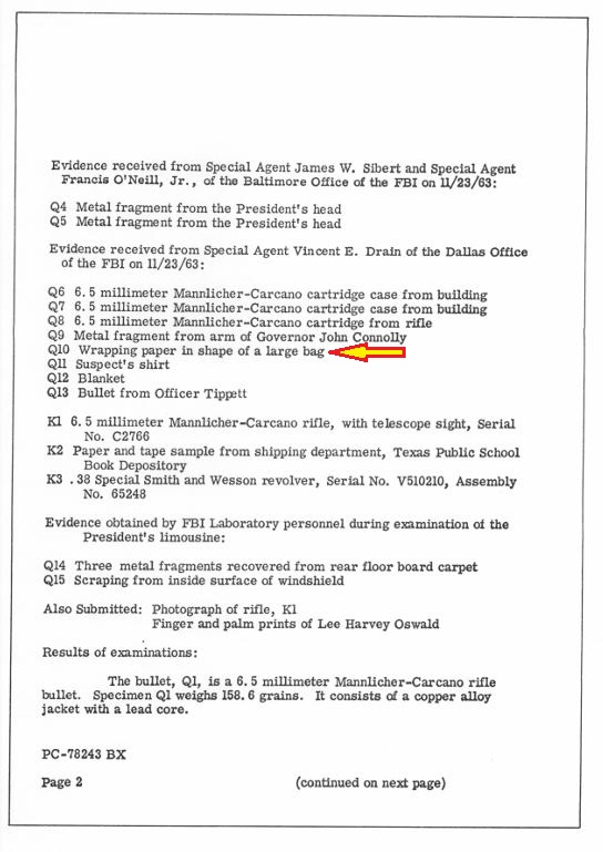 "When the Dallas evidence was shipped to the FBI laboratory early on November 23, there was no mention of the paper bag.