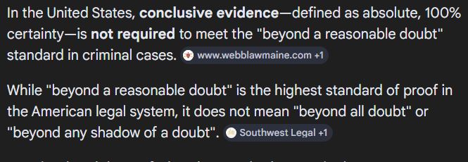 Idiot! The "beyond a reasonable doubt" standard requires conclusive evidence! Maybe they do things differently down under, though...
