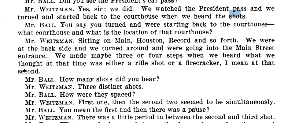 Jack Watson (Sheriff’s office radio operator): "I heard three loud reports evenly spaced." (Statement, Nov. 22, 1963).