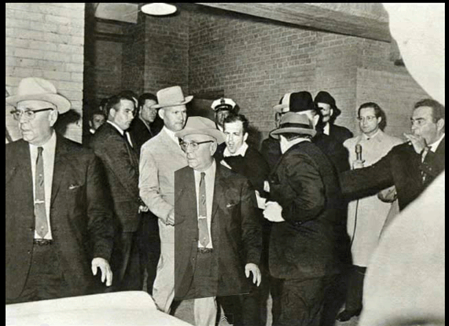 A while ago I came acroos a colour photo, taken before Oswald was led out, of the building into the car park, and it showed a whole bunch of people, gather around the prisoner in a circle with Fritz in the foreground whispering in some other mans ear, I am kicking myself for not saving the image. I think it was on as link which Steve Logan sent to me in a PM before the site crashed? maybe he might remember and resend so we can relocate it?? come in Logan where art thou Logan