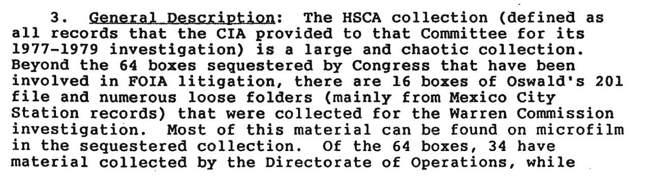 2. If the description of Shaw is intentional, as it obviously is, then you are assuming the historian and his staff made an error when they read through the HSCA documents---but have you reviewed the contents of the 64 boxes they reviewed?