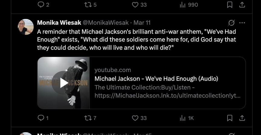 Here is Wiesak pimping for Jackson music sales, a recent post on "X."