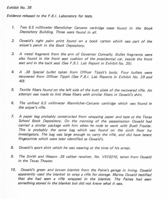 I haven't bothered to count them but Vincent Bugliosi identified over 50 pieces of evidence that indicated Oswald was the assassin. Not one of these pieces of evidence is conclusive by itself of Oswald's guilt, but taken collectively, they leave no doubt. When the most likely explanation for any one piece of evidence is that Oswald is guilty, there is no reasonable argument for his innocence when you have that many pieces pointing to his guilt.