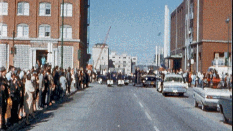 Buddy Walthers seen in this Murray photo, the TSBD clock shows 12:40 pm