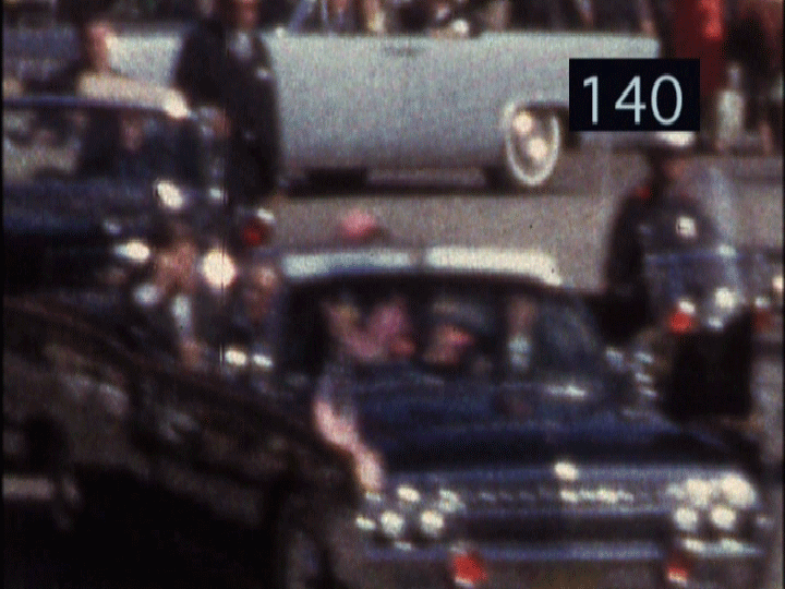 Meanwhile, JFK is shown in this clip during frames Z133 through Z154. JFK finishes fixing his hair and turns his head quickly towards his left shoulder. I would guess that he is checking on Jackie after hearing the first shot (which many folks thought to be a motorcycle backfire).